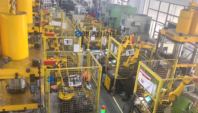鍋內(nèi)膽油壓機拉伸自動化設(shè)備_四軸關(guān)節(jié)機器人